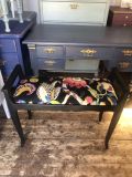 Pianopall från ca 1940 i perfekt skick. Jag har målat den svart och klätt den i ett vackert mönstrat tyg. |